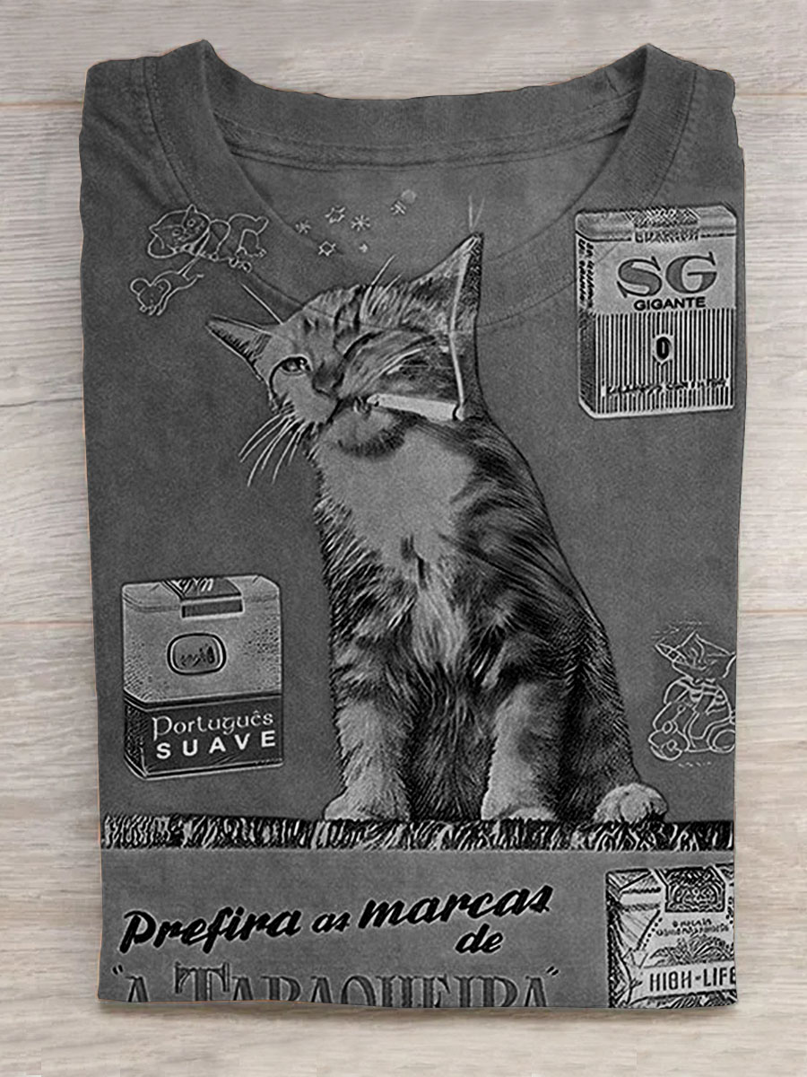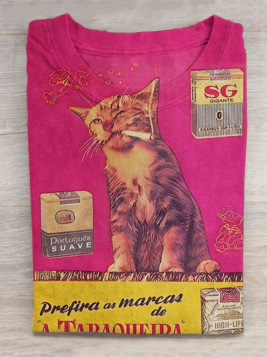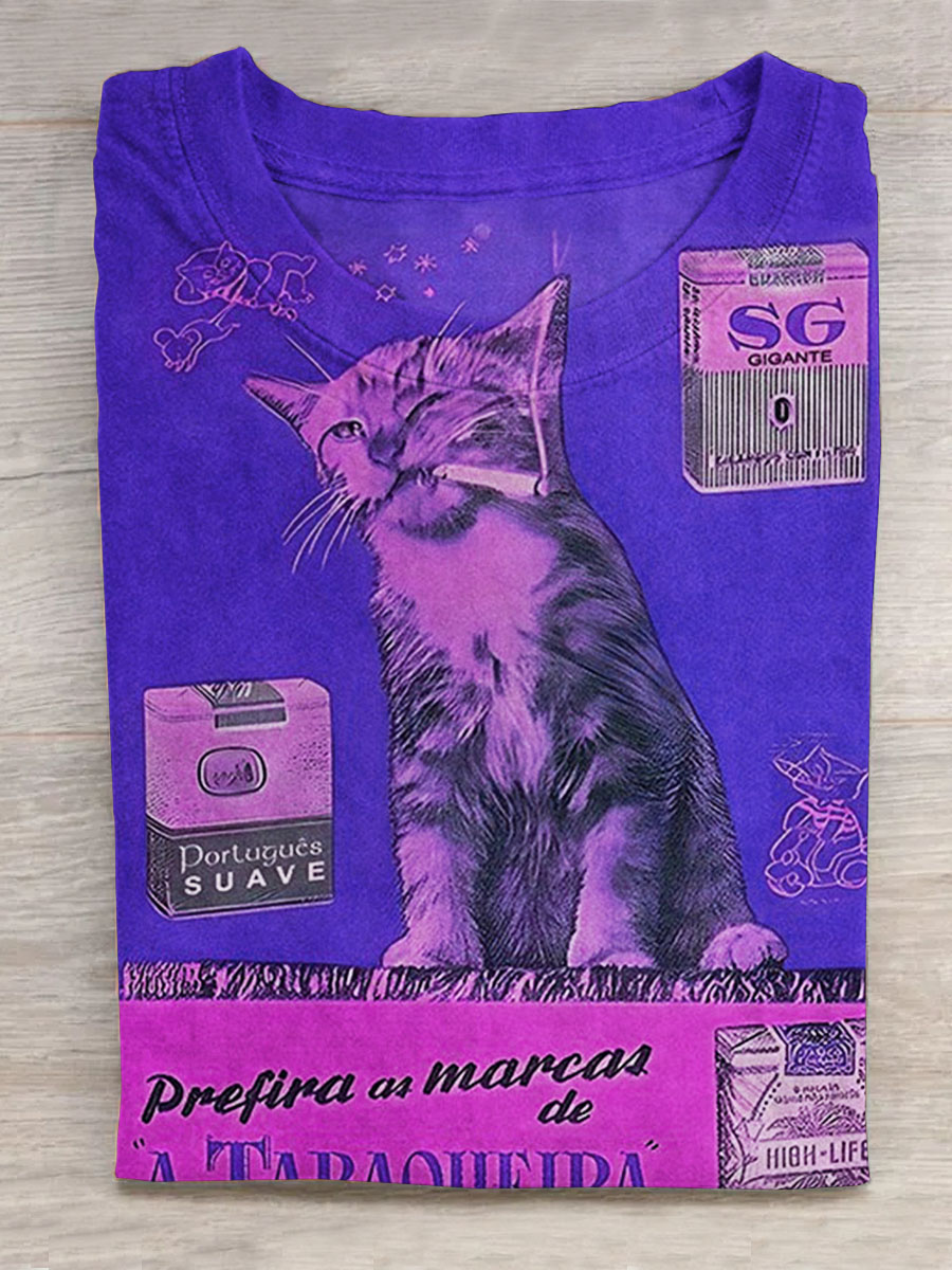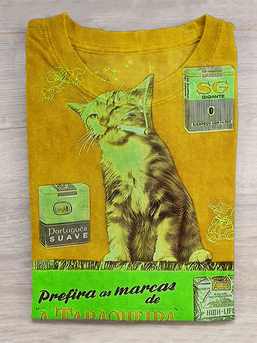 Funny Cat with Sasquatch Cat Selfie Bigfoot Riding Art Print Casaul Short Sleeve T-shirt