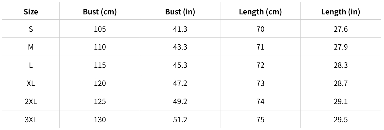 - Size: From S to 3XL