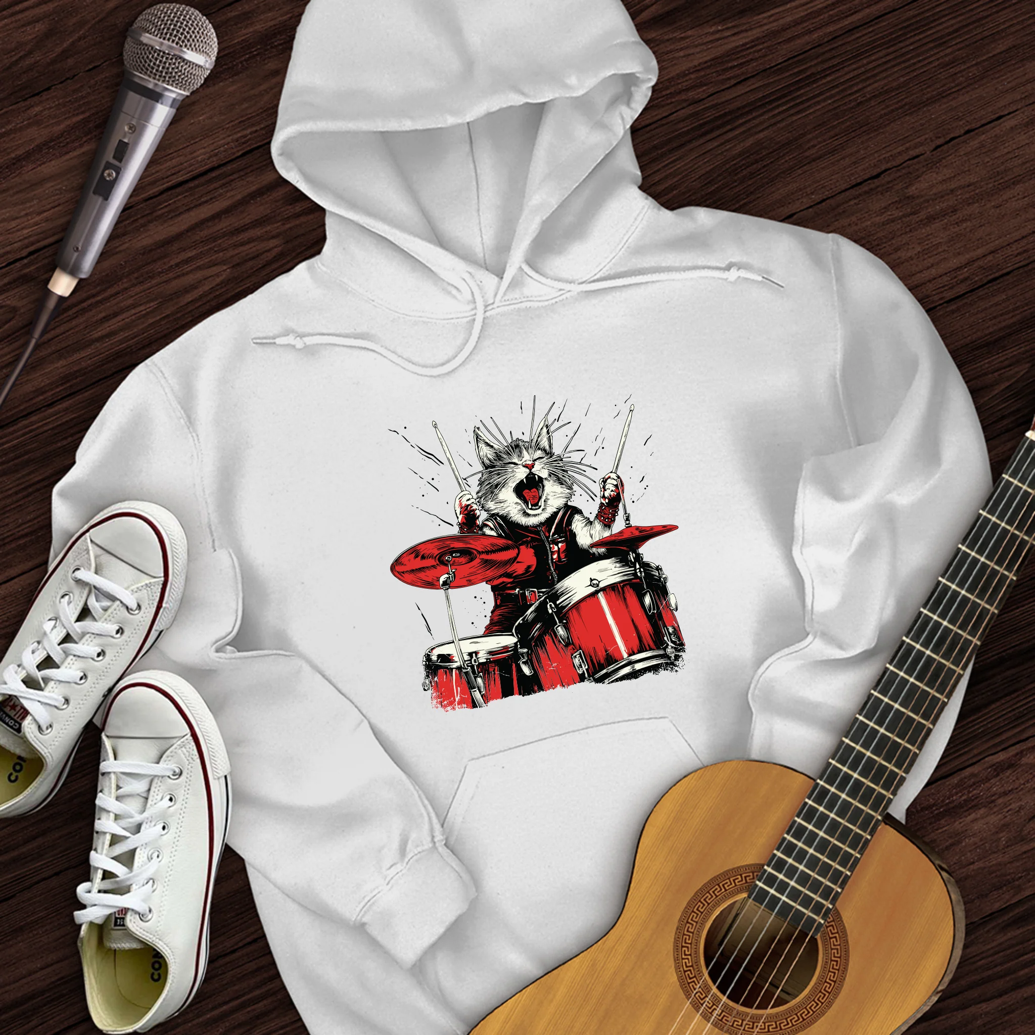 Cat Playing Drums Hoodie