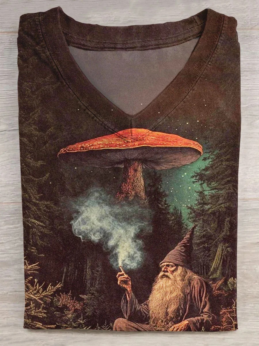 Dark Fantacy Art Print Casaul V-neck Casual T-Shirt
